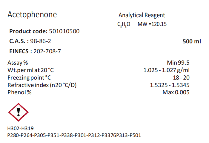 • 商品名稱:Biochem 乙酰苯(acetophenone)分析純