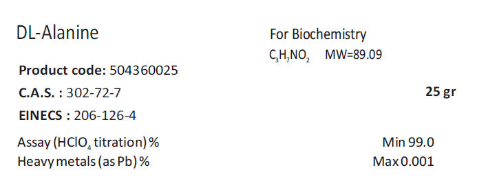 • 商品名稱:Biochem 99% DL-丙氨酸(DL-Alanine)生物化學試劑