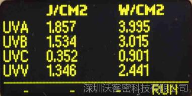 四通道UV測(cè)量計(jì)容易讀取數(shù)據(jù)顯示屏,顯示4個(gè)波段。