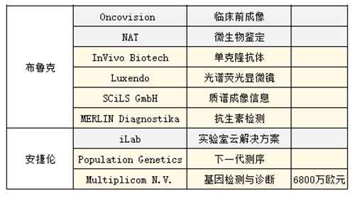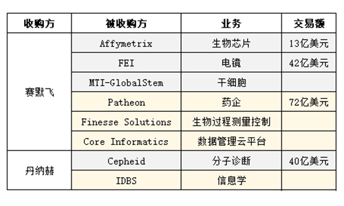 2016-2017年儀器廠商(部分)生命科學領域收購數據