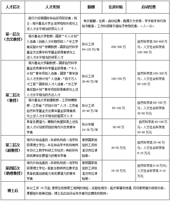 [待遇] 學(xué)校提供優(yōu)厚待遇及校內(nèi)住房或相應(yīng)房補(bǔ),提供20—300萬的科研啟動(dòng)費(fèi)。