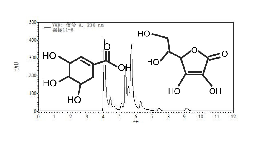最近跑液相遇到了問題,跑有機酸峰挨的太近,不好分開!七月買的zorbaxsb_aq的柱子,條件都試過,用了乙腈和pH2.0的緩沖液,效果不佳。現在是甲醇加pH2.3的能分開九種酸里的六種,現在是抗壞血酸和乳酸分開了一點,但估計不能做積分處理,昨天試過1.8的,結果兩個峰之間的乳酸被蓋住了,三個峰變成兩個了。5min-6min的三個峰分別是抗壞血酸,乳酸,莽草…